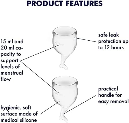 The Satisfyer Feel Secure Menstrual Cup Set offers a practical, reusable way to manage your period. Each set contains two soft silicone cups in different sizes, allowing you to switch them up depending on your flow.