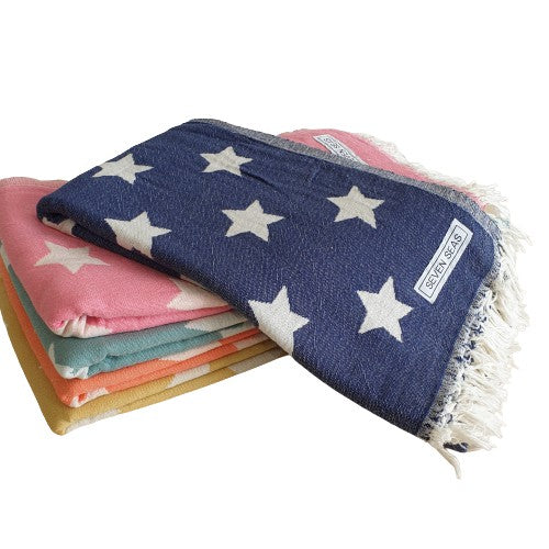 Seven Seas Turkish Towel / Sarong - Premium Stars - Navy Blue
